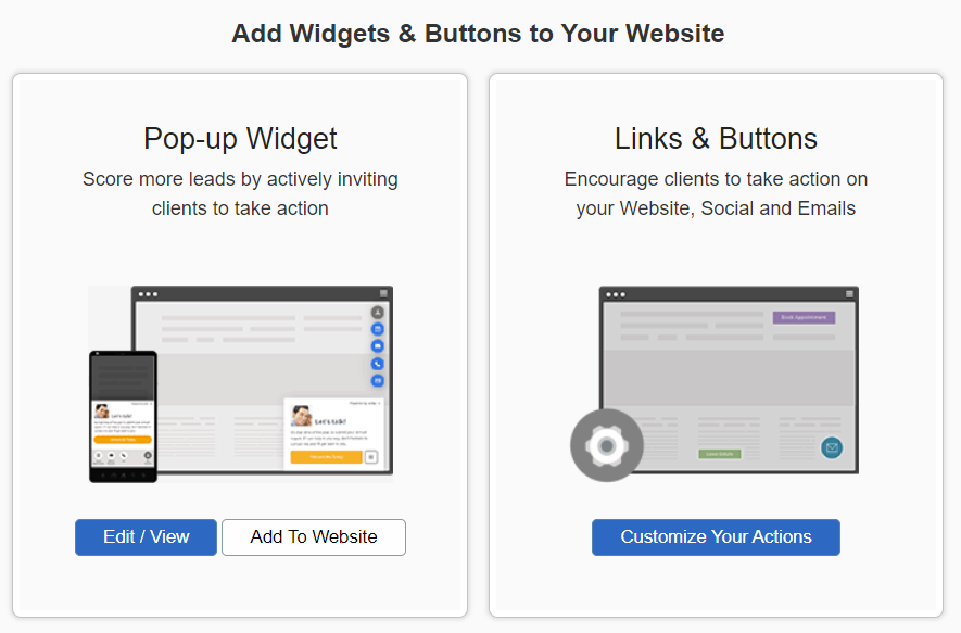 Widgets and links help turn your website visitors into leads, bookings, or customers by guiding them smoothly through the conversion process.